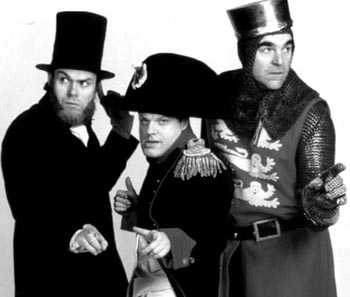 I saw the show twice in Edinburgh. Thank you for such a great time. Even 3 months later we are still laughing. Only yesterday, I said to my friend, "De quelle couleur est ton veston?" and she insisted she was a mushroom. [IF YOU DON'T UNDERSTAND WHAT SHE IS REFERRING TO - COME AND SEE THE SHOW ...NEIL] Is there any chance of the show being available on video? I would gladly pay heaps of money for the interpretive dance section alone.